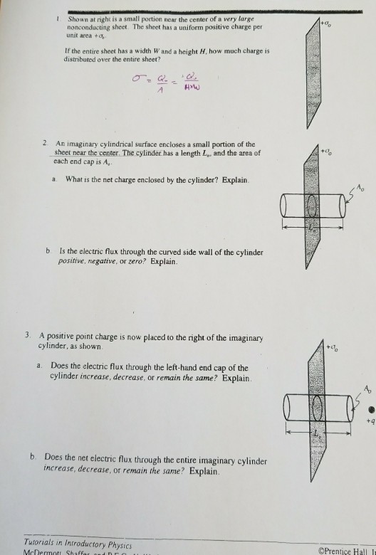 For an infinite sheet of charge the electric field will be perpendicular to the surface. Advertisement Remove all ads. Electric field inside the conductor is zero. Calculate the surface charge density on the sheet. Therefore only the ends of a cylindrical Gaussian surfacewill contribute to the electric flux. with a large charged non-conducting sheet.
