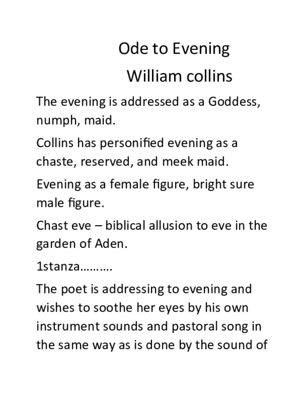 Number of Pages: 139+ pages about William Collins Ode To Evening Summary |